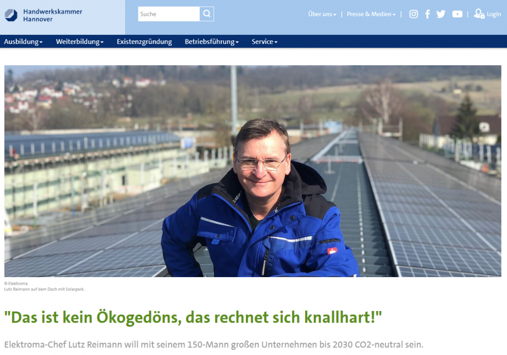 Die Handwerkskammer berichtet: Elektroma-Chef Lutz Reimann will mit seinem 150-Mann großen Unternehmen bis 2030 CO2-neutral sein.