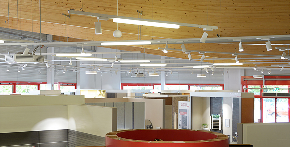 In seiner 2011 erweiterten Lagerhalle hat er deshalb von elektroma Lichttechnik mit Steuerung installieren lassen. Seitdem werden die Gänge über einen Bewegungsmelder nur dann erhellt, wenn ein Gabelstapler hineinfährt. Auch das 2012 neu gebaute Fliesencenter hat ein Beleuchtungskonzept erhalten, das für die Kundenführung optimiert und dank LED-Technik außerdem extrem sparsam ist.